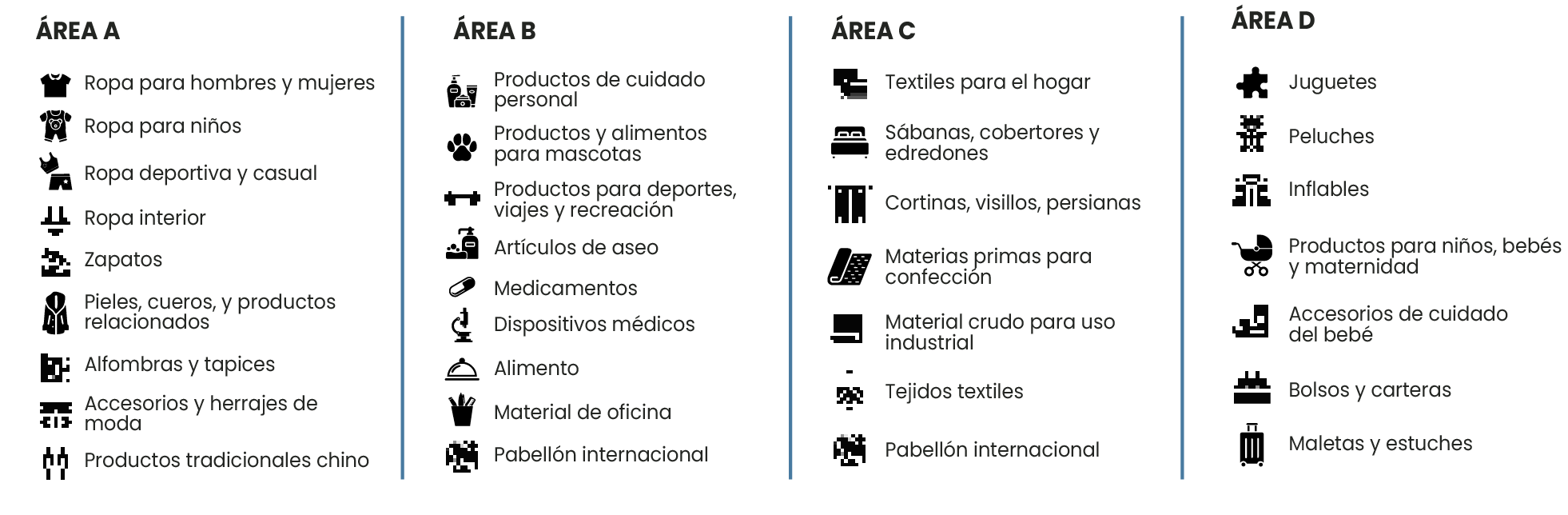 Electrónica, maquinaria, textiles, hogar, consumo masivo, autopartes y mucho más.